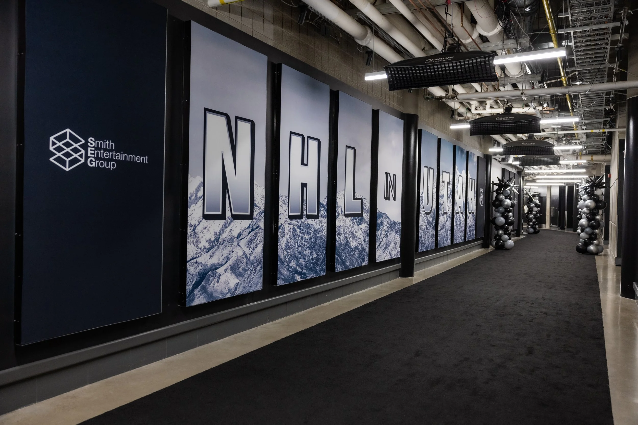 Working hand in hand with Sr. Brand Director, Ben Barnes, we helped build all the assets to launch the NHL in Utah. With very little notice, we had to build graphics with no brand, no logo and no assets. We utilized the NHL shield, Smith Entertainment Group logo and the typeface used in the SEG logo as our primary assets plus an image of Utah - that was about all we had to build promo assets, print collateral, OOH, signage and so much more. The pinnacle of launching the NHL in Utah was bringing the team to town to show them the arena and meet the fans!