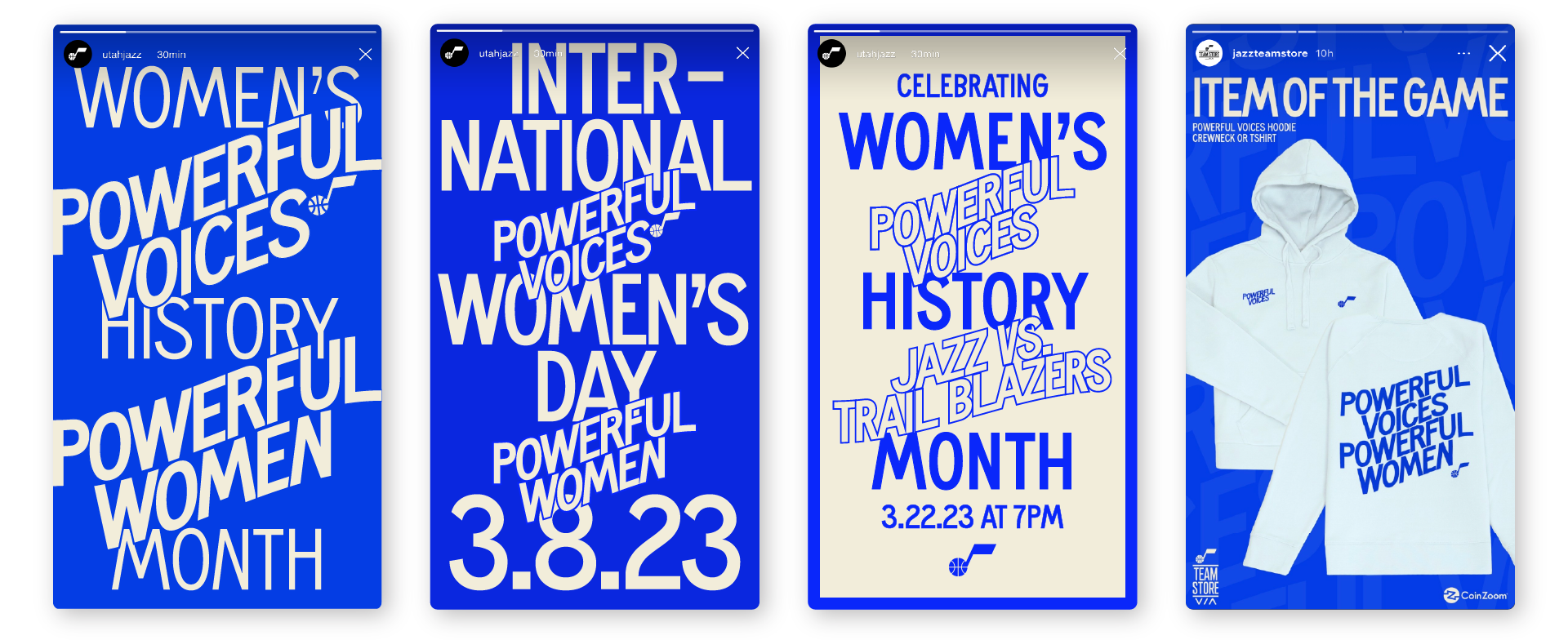 Women’s History Month celebrates a time to not just celebrate the things that women do and accomplish but to celebrate the women themselves. In a male-dominated industry with players as the face of their teams, we flipped the script and showed that women belong in sports. With an all-female team, we created a campaign to spotlight powerful women and amplify their powerful voices. From social media content to in-game experiences, from Jazz Team Store apparel to an in-studio shoot, we set out to let her shine.